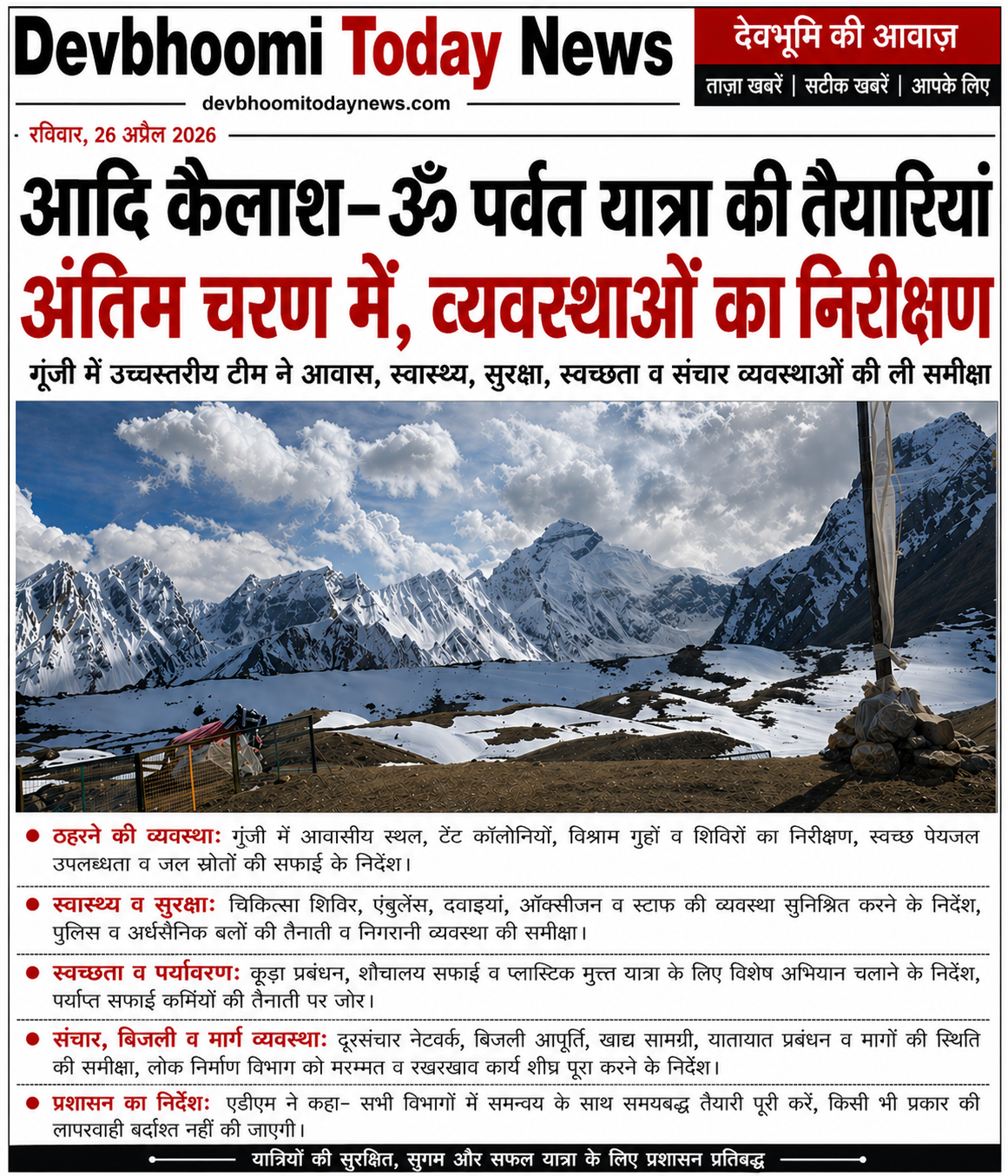 उत्तराखंड ग्रीष्मकाल को लेकर पेयजल व्यवस्था पर सख्ती, संवेदनशील क्षेत्रों में टैंकर से आपूर्ति के निर्देश Editor "देवभूमि टूडे न्यूज"April 24, 2026April 24, 2026 पिथौरागढ़। जिलाधिकारी आशीष कुमार भटगांई की अध्यक्षता में कलेक्ट्रेट सभागार…