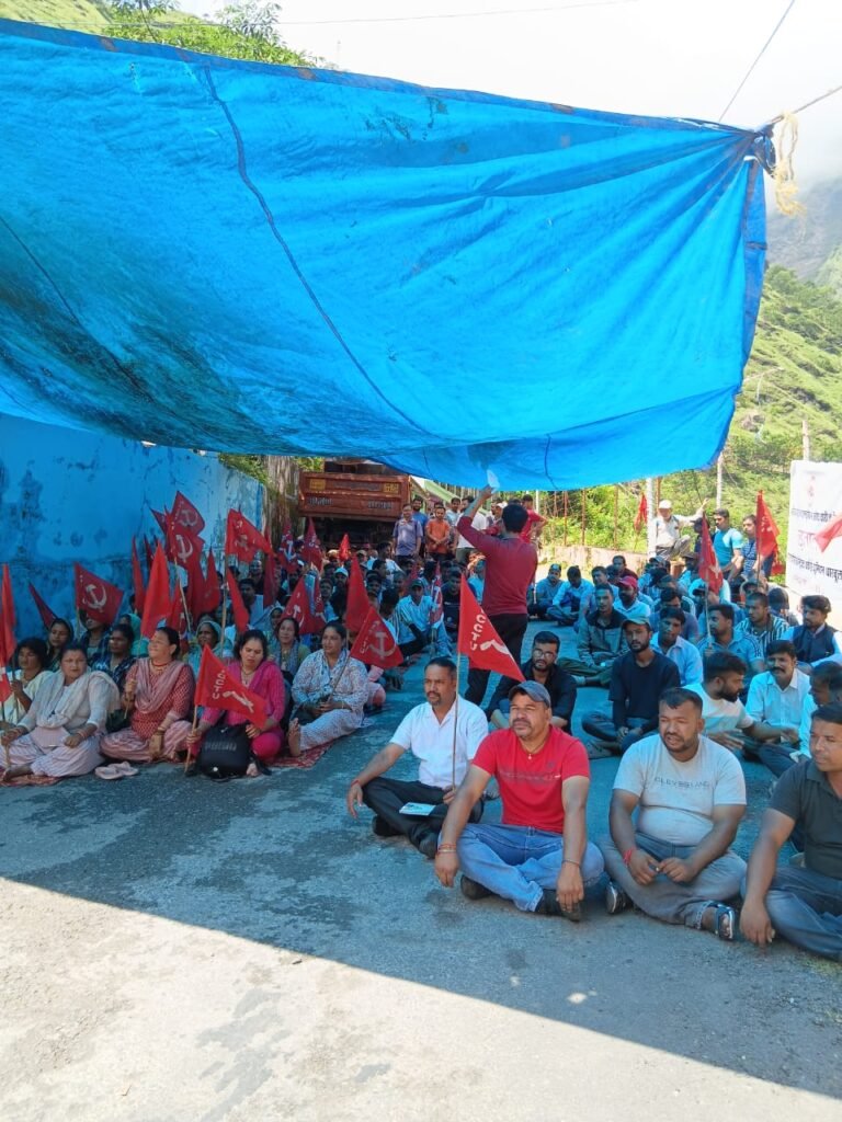 धारचूला/ पिथौरागढ़। ऑल इण्डिया सेन्ट्रल काउन्सिल ऑफ ट्रेड यूनियन (ऐक्टू) से सम्बद्ध एनएचपीसी कॉन्ट्रैक्ट वर्कर्स यूनियन ने वेतन में चोरी के खिलाफ आज से अनिश्चितकालीन हड़ताल का आगाज़ कर दिया है। यूनियन ने एनएचपीसी के धौलीगंगा परियोजना मुख्यालय के बाहर प्रदर्शन कर धरना दिया। इससे एक दिन पहले, यूनियन ने शहर में एक मशाल जुलूस भी निकाला था।